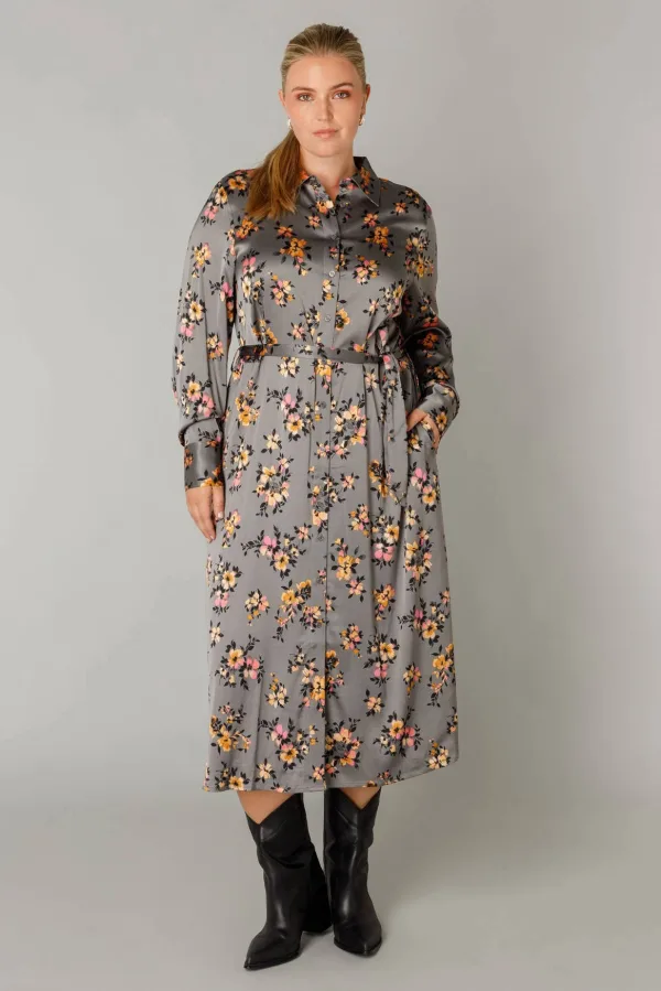 Deze Yest Curve jurk heeft lange rechte mouwen en een klassieke kraag. De jurk is gemaakt van viscose en valt tot het midden. Met veter als sluiting en een ceintuur geef je jouw outfit extra stijl.
