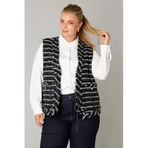 Dit gilet van Yest Curve is mouwloos en gemaakt van 100% polyester. Met een openvallende hals, knoopsluiting en zakken voor draag je dit makkelijk over je favoriete top.