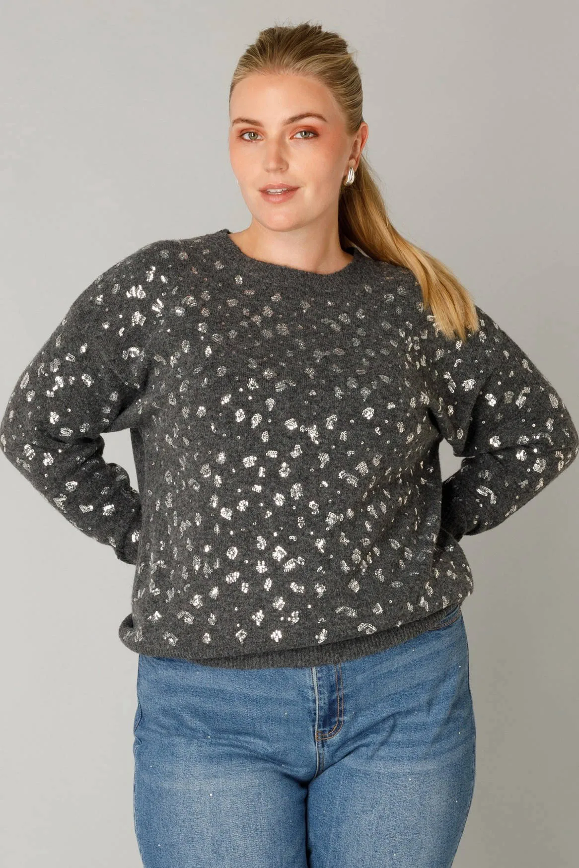 Yest Curve gebreide trui met wol grijs met glitter Prijzen