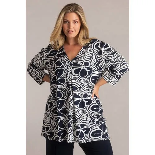 Breng kleur en comfort samen in je dagelijkse outfit met deze Yest Curve tuniektop met bloemenprint. De speelse bloemen op de voor- en achterkant geven direct een kleurige uitstraling, terwijl de V-hals en rechte driekwart mouwen zorgen voor een tijdloze, verzorgde look. Dankzij de toevoeging van elastaan valt de top soepel om het lichaam en beweegt het materiaal makkelijk met je mee.Details die het verschil makenGemaakt van 94% viscose en 6% elastaan voor een zachte stof met lichte stretchDriekwart rechte mouwen, ideaal tussen de seizoenen doorV-hals die de hals subtiel accentueertGeen sluiting, waardoor de top eenvoudig over het hoofd aan te trekken isGeen zakken, voor een glad en rustig silhouetBloemenprint in heldere kleurenVeelzijdig voor werk en vrije tijdDeze top is geschikt voor allerlei momenten. Draag de top naar kantoor met een nette broek of rok, of combineer hem met een comfortabele jeans voor een dag thuis of onderweg. De driekwart mouwen maken de top geschikt voor zowel binnen als buiten, het hele jaar door.Yest Curve: stijl met aandacht voor pasvormYest Curve ontwerpt kleding met oog voor vorm en draaggemak, met pasvormen die zijn afgestemd op ronde vormen en ruimte bieden waar dat nodig is, zonder in te leveren op een moderne uitstraling.Een bloemrijke basic die je garderobe op een rustige, draagbare manier opfrist.