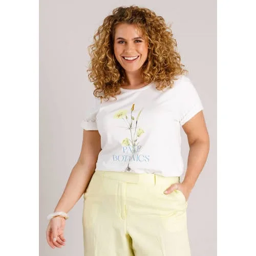 Fris, licht en makkelijk te combineren, dit Yest Curve dames T-shirt is een fijne basic met iets extra's. De ecru basis met gele en blauwe print geeft direct een zachte, voorjaarsachtige uitstraling. Door de middellange lengte valt het shirt mooi over de heupen en sluit het comfortabel aan zonder strak te zitten.Zachte stof en subtiele print Gemaakt van 48% katoen, 48% modal en 4% elastaan voor een soepele, zachte touch op de huid Ecru T-shirt met print in geel en blauw voor een rustige, maar toch speelse look Ronde hals en korte, rechte mouwen voor een tijdloos silhouet Middellange lengte die prettig valt en gemakkelijk in of over de broek te dragen is Behoort tot het grote maten assortiment, ontworpen met aandacht voor een comfortabele pasvorm Wasbaar op 30 graden, geschikt voor dagelijks gebruikElke dag eenvoudig te stylenDit T-shirt uit de Daily collectie is ideaal voor alledaagse outfits in het voorjaar. Combineer het met een lichte jeans en sneakers voor een casual dag, of met een nette broek voor een toegankelijke, verzorgde look. De zachte printkleuren maken het eenvoudig om te dragen met zowel denim als effen broeken en rokken.Yest Curve: stijl voor elke dagYest Curve richt zich op vrouwen die graag modieuze items dragen in grotere maten, met aandacht voor pasvorm en draagcomfort. De collecties zijn gemaakt voor dagelijks gebruik, met items die goed te combineren zijn en je garderobe een moderne, vrouwelijke uitstraling geven.Een prettig T-shirt dat je graag uit de kast pakt voor een comfortabele en stijlvolle dag.