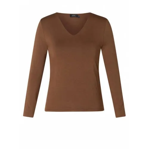 Deze top van Yest Curve heeft rechte mouwen en een V-hals. De top is gemaakt van viscose met elastaan, voelt soepel en draagt prettig. Je combineert deze top makkelijk met andere items.