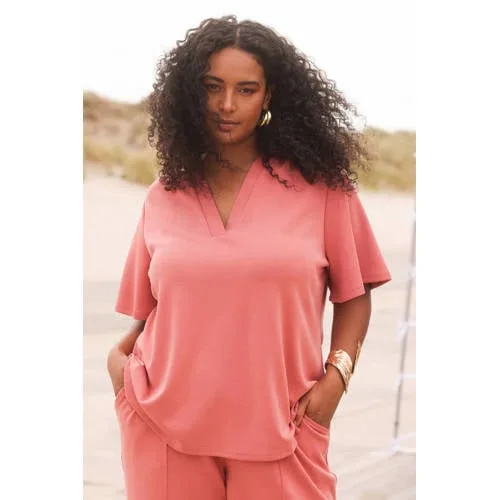 De Yest Curve top Lunette is een luchtige basic voor elke zomerdag. De effen koraalrode kleur geeft direct een frisse, warme uitstraling en laat zich makkelijk combineren met je favoriete broeken en rokken. Door de V-hals en de rechte korte mouwen oogt de top vrouwelijk en ontspannen, ideaal voor dagelijkse looks.Details die je elke dag draagt Effen koraalrode top die zorgt voor een frisse zomerse uitstraling V-hals die het decolleté subtiel accentueert Korte rechte mouwen voor luchtig draagcomfort op warme dagen Gemaakt van een zachte stof met modal en elastaan, die soepel valt en licht meerekt Geen sluiting, je trekt de top eenvoudig over het hoofd aan Onderdeel van de 'Daily' collectie, geschikt voor alledaagse outfits Geschikt voor grote maten, met aandacht voor een comfortabele pasvorm Wasbaar op 30 graden, waardoor de kleur mooi blijft bij regelmatig wassenFrisse koraaltint voor elke dagDeze top past goed bij een lichte jeans of een wijde broek voor een casual dag. Voor een iets gekledere look combineer je Lunette met een nette zwarte broek of een rok. De soepele stof volgt je bewegingen, waardoor de top prettig aanvoelt tijdens werk, een dagje stad of een etentje.Yest Curve, mode met aandacht voor vormYest Curve richt zich op dames met ronde vormen die houden van moderne, draagbare mode. De pasvormen zijn afgestemd op grote maten en de ontwerpen zijn gemaakt met oog voor comfort en een flatterend silhouet. Zo biedt Yest Curve collecties die je eenvoudig combineert tot dagelijkse outfits waar je op kunt vertrouwen.Een comfortabele, zomerse basic die je garderobe rustig en tegelijk kleurrijk aanvult.