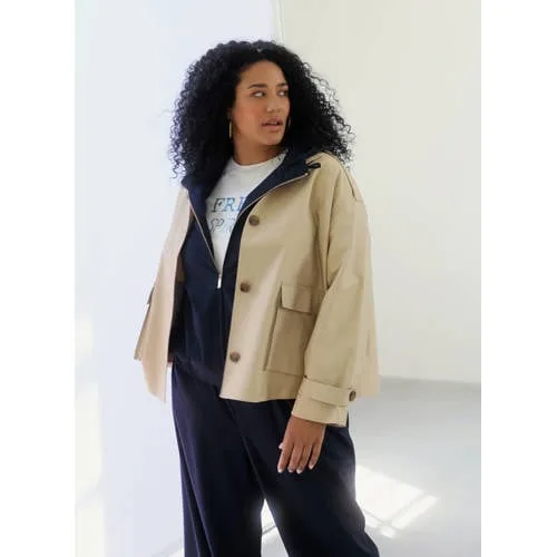 Deze korte beige Yest Curve jas is een lichte basic voor frisse lentedagen. De jas heeft het silhouet van een trenchcoat, maar dan in een kortere, comfortabele lengte die makkelijk combineert met je dagelijkse outfits. Gemaakt van katoen voelt het materiaal stevig en toch soepel aan, waardoor je je vrij kunt bewegen.Praktische details in een vrouwelijke snit Korte trenchcoatstijl, ideaal als tussenjas voor het voorjaar Knoopsluiting aan de voorkant voor een nette afwerking Klassieke kraag die zowel open als gesloten mooi valt Lange, rechte mouwen voor een tijdloos silhouet Zakken aan de voorkant om je handen warm te houden of kleine spullen bij je te dragen Effen beige kleur die rustig oogt en eenvoudig te combineren is Gemaakt van katoen voor een natuurlijke touch en prettig draaggevoel Onderdeel van het grote maten assortiment van Yest Curve Wasbaar op 30 graden, zodat je de jas gemakkelijk fris houdtIdeaal als lichte tussenjasDeze jas is geschikt voor lentedagen waarop je een extra laag nodig hebt, maar geen dikke winterjas meer wilt dragen. Draag de jas over een blouse en jeans met sneakers voor een casual dag, of combineer met een nette broek en loafers voor een meer geklede look.Yest Curve voor vrouwelijke pasvormenYest Curve richt zich op kleding in grotere maten, met aandacht voor pasvorm, comfort en actuele trends. De ontwerpen volgen de trends, maar blijven toegankelijk en draagbaar in het dagelijks leven. Zo kies je voor kleding waarin je je de hele dag prettig voelt.Een veelzijdige tussenjas die je gemakkelijk aantrekt zodra het buiten wat frisser wordt.