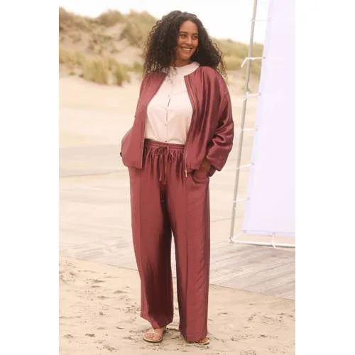 Ga voor een ontspannen maar verzorgde look met de Yest Curve broek Bottoms Liv. Deze roodbruine broek heeft een lange, elegante lengte en een wide leg pasvorm die soepel langs het been valt. De effen kleur maakt het een praktische basis voor elke dag, terwijl de comfortabele tailleband met koord zorgt voor een aansluitende pasvorm rond de heupen.Dagelijks comfort met een wide leg pasvorm Wide leg model voor een luchtige en losse pasvorm langs het been Elastische tailleband met koord voor extra gemak bij het aan- en uittrekken Zakken aan de voorkant voor kleine essentials zoals sleutels of telefoon Gemaakt van viscose en polyamide, met een soepele touch Effen roodbruine kleur die makkelijk te combineren is met tops en T-shirts Regular waist, valt comfortabel in de taille Geschikt voor dagelijks gebruik in het zomerseizoen Wasbaar op 30 graden, praktisch in onderhoudVeelzijdig te stylen, van casual tot gekleedDe Bottoms Liv broek past goed in een dagelijkse garderobe. Combineer met een eenvoudige top en sneakers voor een casual dag, of met een blouse en sandalen voor een meer geklede look. Door de lange lengte en het rustige dessin is de broek eenvoudig te combineren.Yest Curve: speciaal voor grotere matenYest Curve richt zich op dames die behoefte hebben aan modieuze kleding in grotere maten, met aandacht voor pasvorm en draaggemak. De collecties sluiten aan bij dagelijkse momenten, zodat je eenvoudig combinaties maakt die passen bij jouw stijl.Een praktische basisbroek die je garderobe net wat meer kleur en souplesse geeft.