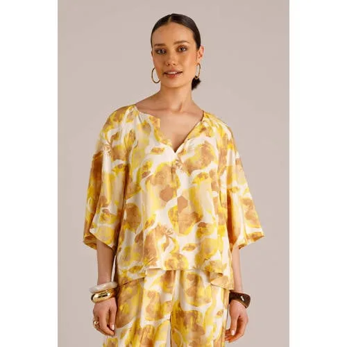 Yest gebloemde top geel