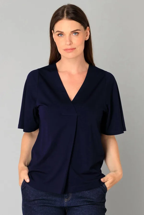 Deze top van Yest heeft korte mouwen en een V-hals. De rechte mouwen zorgen voor een eenvoudige uitstraling. De top is gemaakt van viscose en heeft plooien als detail.