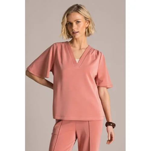 Breng kleur in je dagelijkse looks met deze koraalrode dames top van Yest. De frisse tint koraalrood geeft direct een zomerse uitstraling, terwijl de eenvoudige snit zorgt voor een rustige, vrouwelijke basis. De V-hals en korte rechte mouwen maken deze top ideaal voor warme dagen, maar ook perfect onder een vest of blazer.Comfortabele basic in koraalrood Effen koraalrode kleur die makkelijk te combineren is met jeans, rok of short V-hals voor een open halslijn Korte, rechte mouwen voor luchtig draagcomfort Zachte stof met lichte stretch door het elastaan, voor een soepele pasvorm Valt glad en comfortabel dankzij het aandeel modal Zonder sluiting, je trekt de top eenvoudig over het hoofd aan Wasbaar op 30 graden, handig voor regelmatig gebruik Geschikt voor de zomercollectie, maar ook goed te stylen in laagjesVoor alledaagse en vrouwelijke combinatiesDeze Yest top past goed in een dagelijkse garderobe met een vrouwelijke touch. Combineer met een lichte jeans en sandalen voor een ontspannen dag, of kies een mooie rok en subtiele sieraden als je netter gekleed wilt gaan. De effen kleur maakt het eenvoudig om er een vest, blazer of fijn gebreid truitje overheen te dragen.Yest: eigentijdse mode voor elke dagYest ontwerpt mode die comfortabel aanvoelt en toegankelijk is voor iedere dag. De collecties sluiten aan bij een moderne, vrouwelijke stijl met items die makkelijk te combineren zijn. Met deze top haal je een praktisch kledingstuk in huis dat past binnen een garderobe die meegaat met het seizoen en jouw dagelijks leven.Een luchtige basic die het hele seizoen door van pas komt.
