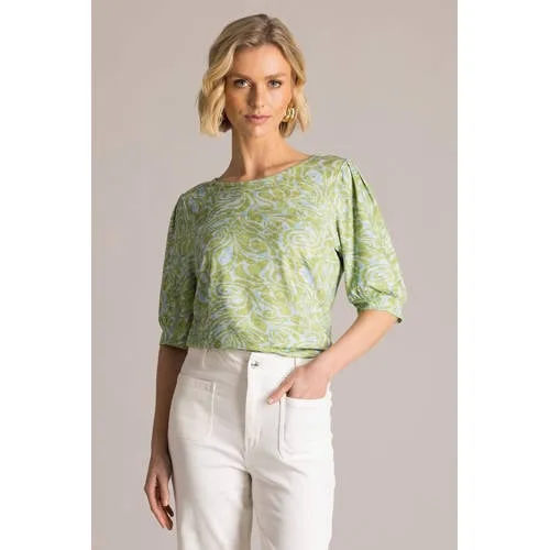 Frisse kleuren en een vrouwelijke snit komen samen in deze lichtgroene dames top met pofmouwen van Yest. De combinatie van lichtgroen en blauw in een all over print geeft direct een zomerse uitstraling. De top heeft een ronde hals en driekwart mouwen met subtiele pof, waardoor het model net wat meer volume en charme krijgt. Dankzij de mix van 96% viscose en 4% elastaan voelt de stof soepel aan en sluit de top mooi om het lichaam aan, zonder te strak te zitten.Details die het verschil maken Lichtgroen/blauwe all over print voor een frisse, zomerse look Driekwart pofmouwen voor een vrouwelijk accent bij de armen Ronde hals die gemakkelijk combineert met verschillende kettingen Zachte, soepele stof met lichte stretch door 4% elastaan Geen sluiting en geen zakken voor een glad en rustig silhouet Wasbaar op 30 graden, prettig in het onderhoudVeelzijdig voor zomerse dagenDeze top past goed bij allerlei zomerse outfits. Combineer met een lichte jeans of een rok voor een luchtige look op warme dagen. De driekwart mouw maakt de top ook geschikt voor koelere avonden of voor op kantoor, terwijl de soepele stof comfortabel aanvoelt, de hele dag door.Yest, eigentijdse modeYest biedt eigentijdse damesmode met een comfortabele pasvorm. De collecties zijn afgestemd op het dagelijks leven en sluiten aan bij de mode van nu. Met deze top kies je voor een veelzijdig item dat eenvoudig te combineren is en prettig draagt in verschillende situaties.Een praktische keuze als je houdt van kleur, comfort en een vrouwelijke uitstraling in je garderobe.
