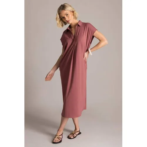Voor een moeiteloze zomerse look is de roodbruine midi jurk Kloe van Yest een fijne keuze. De jurk heeft een middellange lengte en valt soepel langs het lichaam. De effen oudroze kleur geeft een rustige, stijlvolle uitstraling die je makkelijk doortrekt in de rest van je outfit. Het travelstof materiaal volgt je bewegingen prettig, waardoor deze jurk geschikt is voor een drukke dag en een etentje daarna.Details die je iedere dag draagtMidi lengte tot rond de knie voor een comfortabele, toegankelijke lookKorte, rechte mouwen die luchtig aanvoelen in de zomerKlassieke kraag en knoopsluiting voor een nette, verzorgde bovenkantZijzakken voor het gemak van een sleutel of telefoon binnen handbereikEffen oudroze kleur die mooi combineert met neutrale en donkere tintenGeschikt voor dagelijks gebruik in het zomerseizoenWasbaar op 30 graden, waardoor onderhoud eenvoudig blijftVan werkdag tot vrije tijdDeze jurk past goed in je dagelijkse garderobe. Draag Kloe met sneakers en een lichte tas voor een werkdag of afspraak in de stad. Voor een avond uit combineer je de jurk eenvoudig met sandalen met hak en subtiele sieraden.Yest: toegankelijke stijl voor elke dagYest staat bekend om moderne collecties die aansluiten op het dagelijkse leven. De modellen zijn draagbaar en combineren actuele trends met comfort. Zo voeg je met ieder Yest item iets nieuws toe aan je kast waar je vaak naar grijpt.Een stijlvolle basisjurk waar je in de zomermaanden veel plezier van hebt.