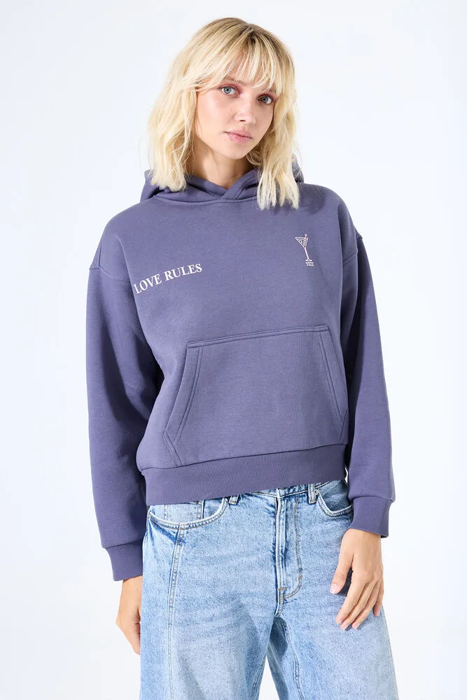 Comfortabele hoodie met allover tekstprint. Deze hoodie heeft een capuchon, lange mouwen en een relaxed fit. Dit item is gemaakt van 45% katoen, 30% polyester en 25% gerecycled katoen.
