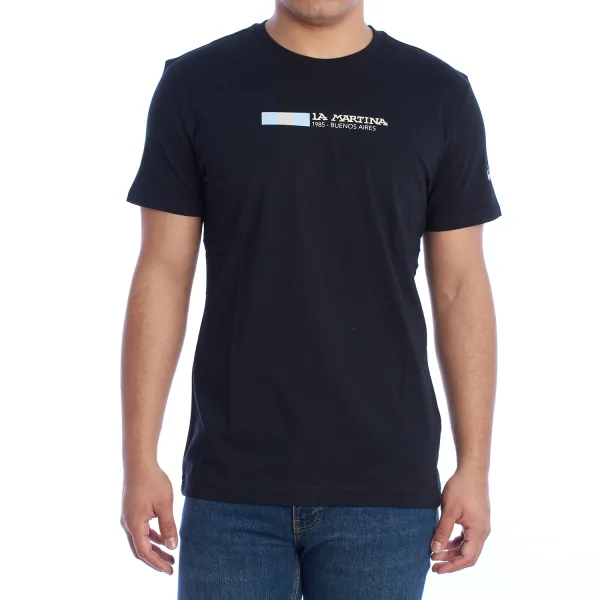 Herren-Kurzarm-T-Shirt von La Martina. Als Kleidungsstück, das Stil und Komfort in Einklang bringt, zeichnet sich das T-Shirt La Martina durch sein minimalistisches Design und markante Details aus, die den Charakter der Marke widerspiegeln. Einzelheiten: - Hergestellt aus weicher und leichter Baumwolle, ideal, um Frische und Komfort zu garantieren. - Auf der Brust sind das Jahr und die Stadt aufgedruckt, die die Herkunft und Authentizität der Marke hervorheben. - Gesticktes Logo am Ärmel. - Regulärer Schnitt. - Klassischer Rundhalsausschnitt und verstärkte Nähte sorgen für Haltbarkeit und Widerstandsfähigkeit. - Perfekt kombinierbar mit Jeans oder Shorts, ideal für lässige Looks. Dieses Herren-Kurzarm-T-Shirt vereint außergewöhnliche Qualität und einzigartiges Design. Es ist ideal für informelle Anlässe und bietet einen lässigen und modernen Stil, der die Essenz von La Martina hervorhebt. Komposition: 100% Baumwolle Pflege: - Maximal bei 30°C im Schonwaschgang waschen. - Verwenden Sie keine Bleichmittel oder Bleichmittel. - Bei niedriger Temperatur bügeln, vorzugsweise auf links. - Benutzen Sie keinen Trockner.