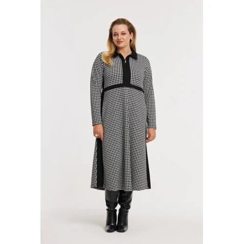 Deze jurk van YOEK heeft lange rechte mouwen en een klassieke kraag. Deze jurk is gemaakt van polyester met een all over print. De lengte is midi en het is een A-lijn model.