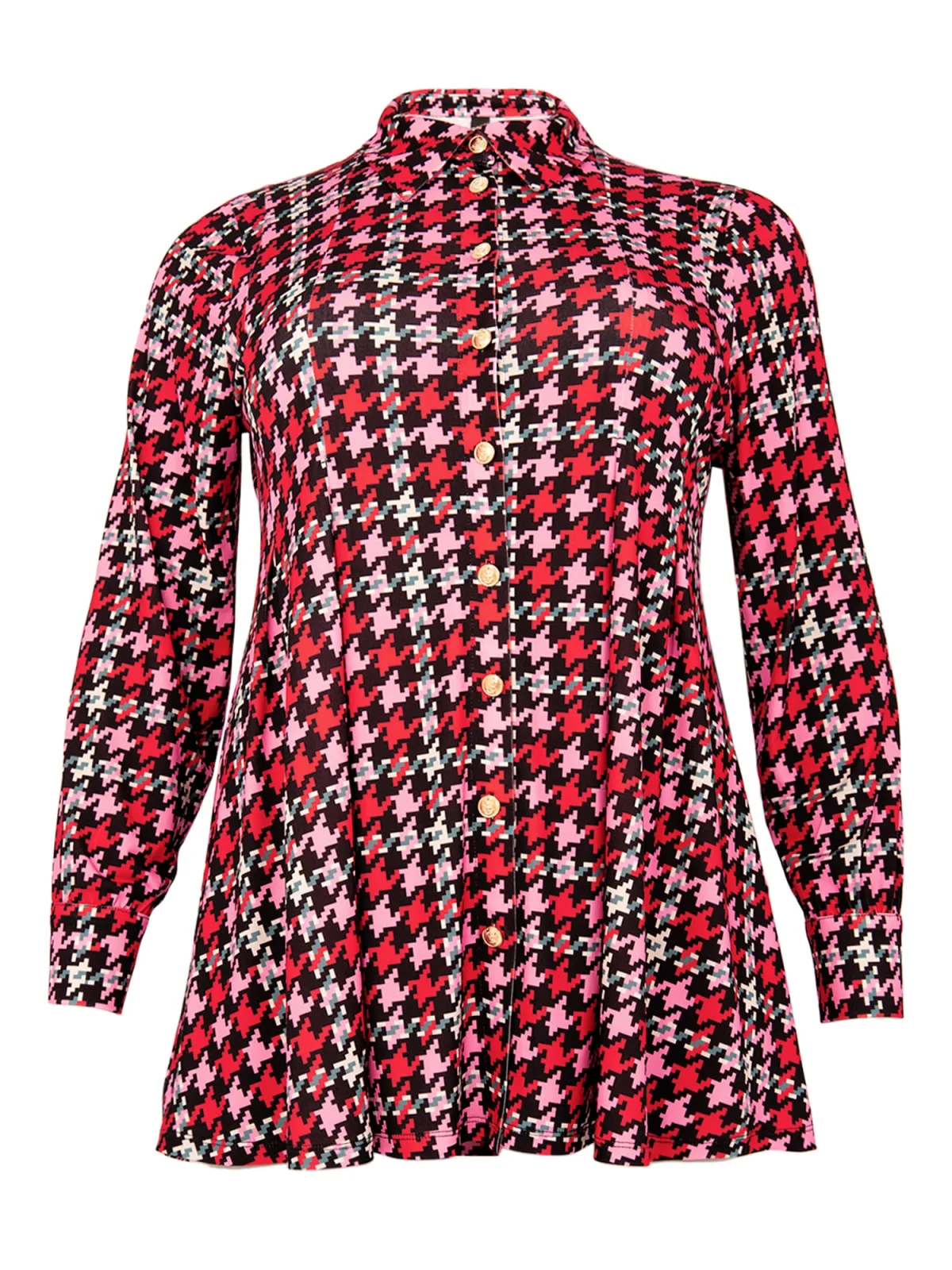 Blouse type: Klassieke blouse; Design: 1-knoops manchetten, Gevoerde zoom/rand; Type sluiting: Knoopsluiting; Motief: Geruit; Kraag: Kentkraag; Details: Plooien, Gedrapeerd; Extra's: All-over patroon, Gladde stof; Pasvorm: Normale pasvorm; Armlengte: Lange mouw; Lengte: Normale lengte