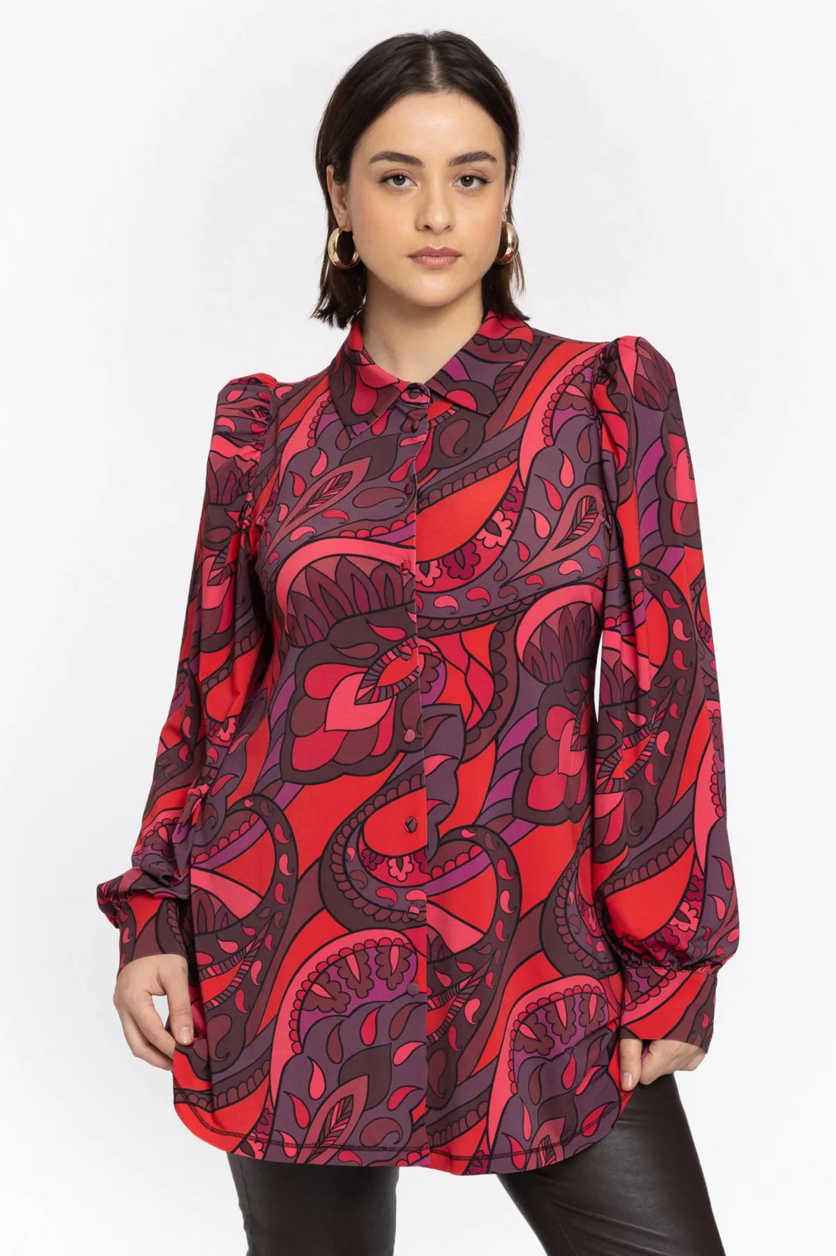 Blouse type: Klassieke blouse; Type sluiting: Knoopsluiting; Kraag: Kentkraag; Pasvorm: Losse pasvorm; Armlengte: Lange mouw; Lengte: Normale lengte