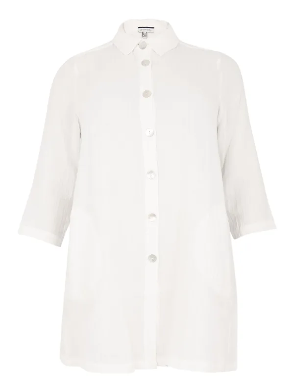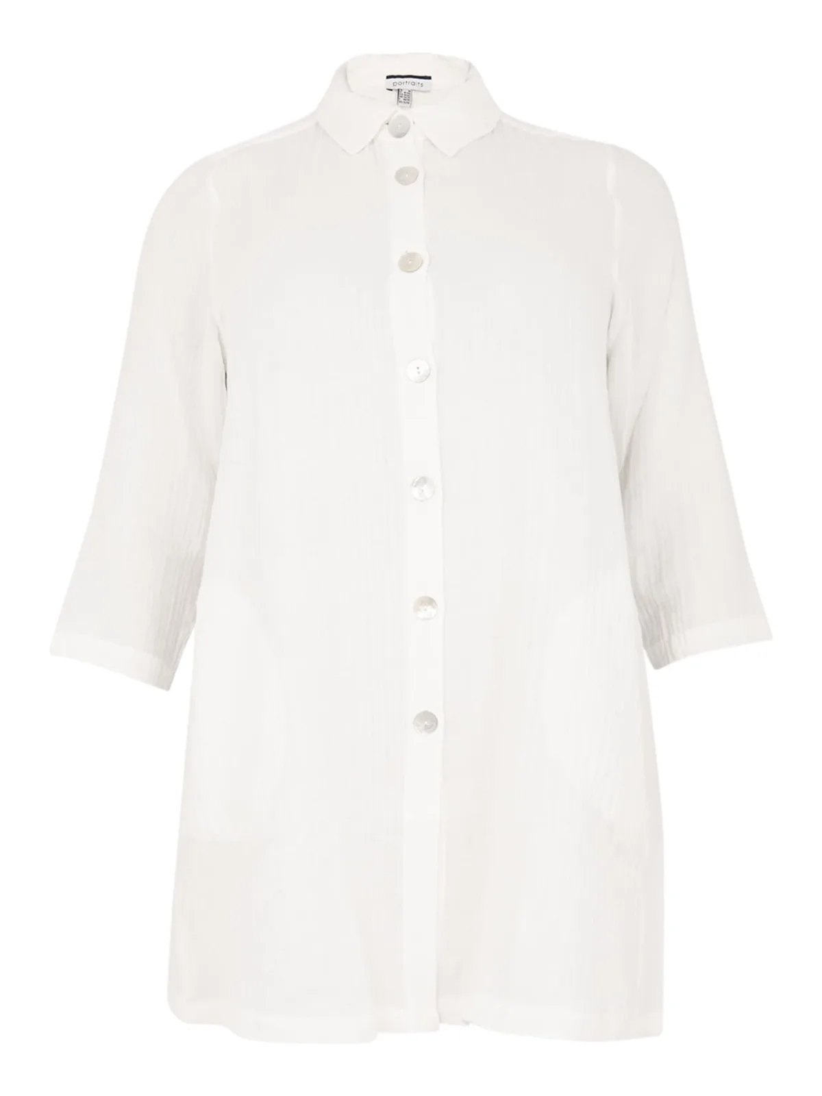 Blouse type: Klassieke blouse; Design: Afgeronde manchetten; Type sluiting: Knoopsluiting; Materiaal: Katoen; Motief: Effen; Kraag: Kentkraag; Pasvorm: Losse pasvorm; Armlengte: Lange mouw; Lengte: Lange pasvorm