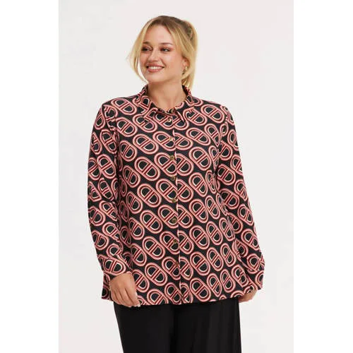 This blouse with a striking retro print is crafted from soft, stretchy dolce fabric. The slight A-line shape drapes beautifully over the hips for a feminine look. Style it with black trousers or match it with the printed pieces for a bold set. Comfortable, chic, and full of confidence.