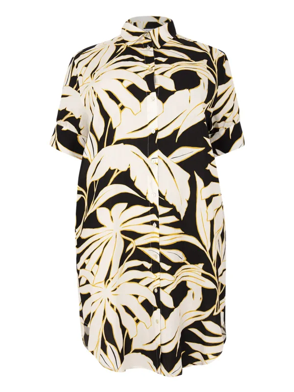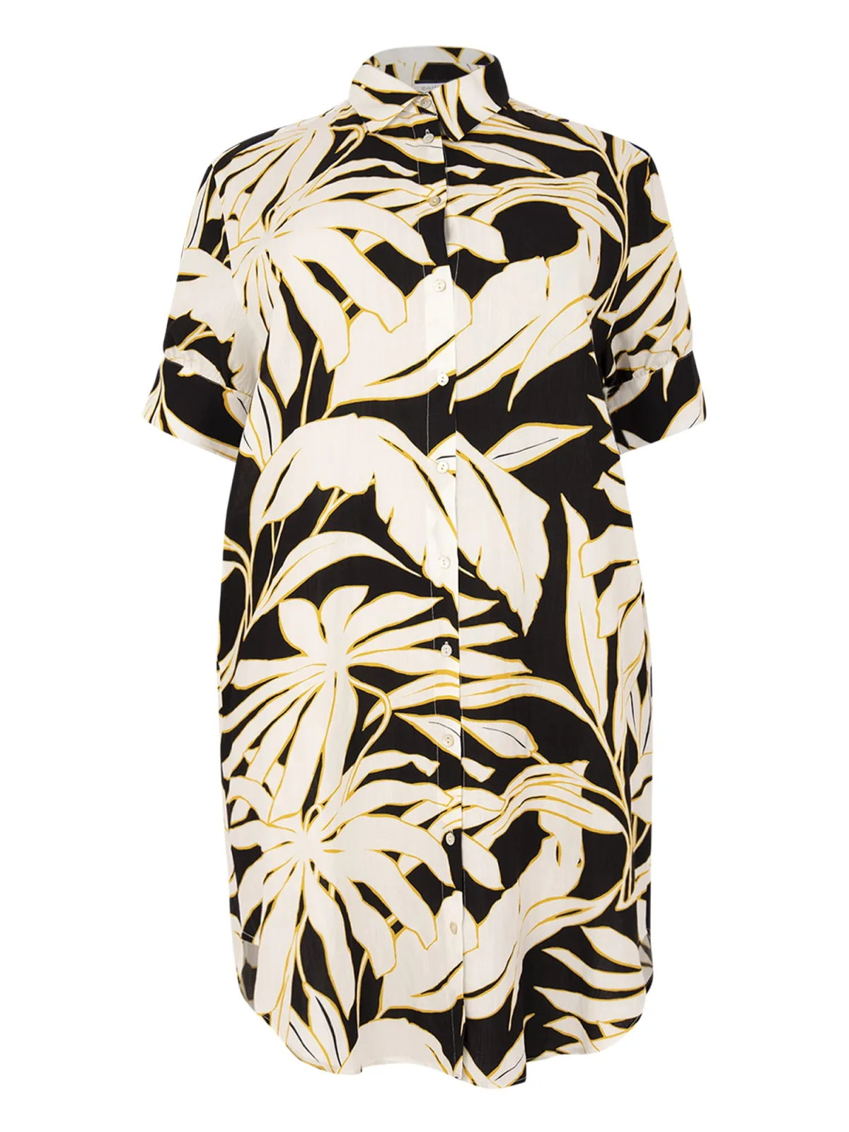 Design: Afgeronde manchetten; Type sluiting: Knoopsluiting; Materiaal: Viscose; Motief: Bloemenprint; Kraag: Kentkraag; Soort bandjes: Normale bandjes; Extra's: All-over patroon; Lengte: Knielengte; Pasvorm: Losse pasvorm; Armlengte: Lange mouw