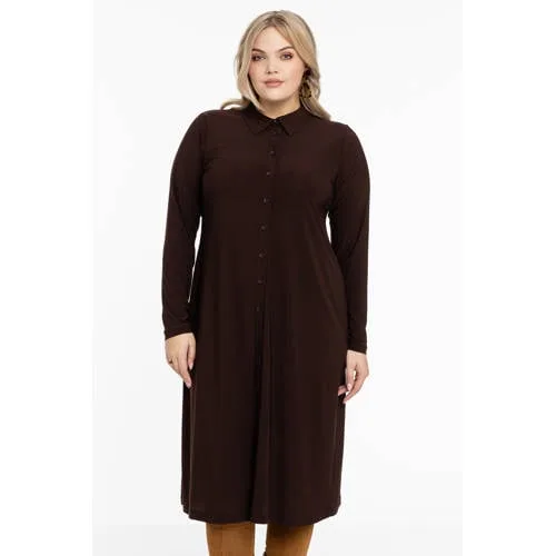 YOEK blousejurk van travelstof DOLCE bruin