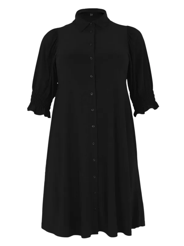 Design: Pofmouwen; Type sluiting: Knoopsluiting; Motief: Effen; Kraag: Kentkraag; Details: Gedrapeerd; Lengte: Knielengte; Pasvorm: Normale pasvorm; Armlengte: Driekwart mouw