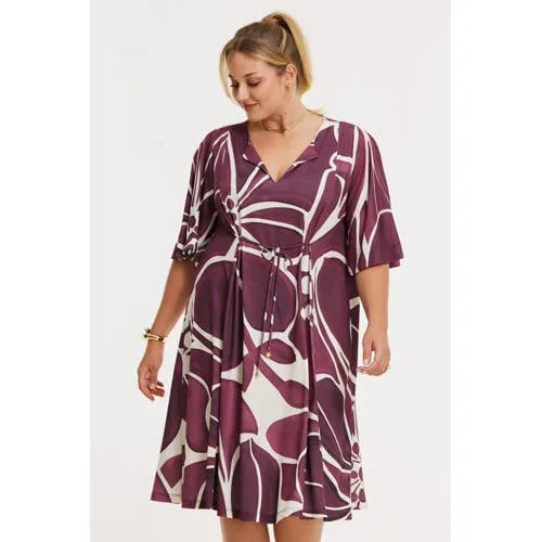 YOEK gebloemde A-lijn jurk donkerpaars