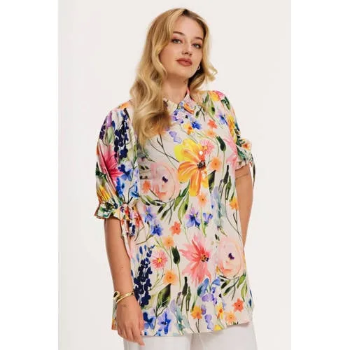 Blouse type: Klassieke blouse; Design: Gevoerde zoom/rand, Knop placket; Motief: Bloemenprint; Kraag: Kentkraag; Details: Gedrapeerd; Extra's: All-over patroon; Pasvorm: Losse pasvorm; Armlengte: Halve mouw; Lengte: Normale lengte