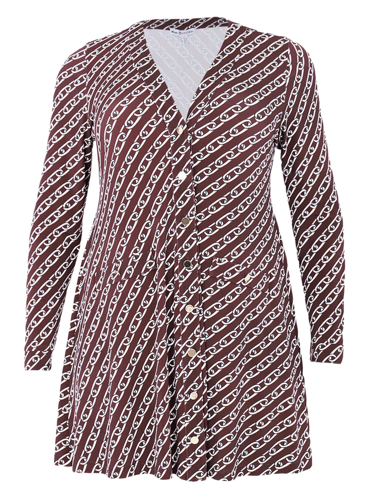 Design: Nepzakken; Type sluiting: Knoopsluiting; Halstype: V-hals; Pasvorm: Wijde pasvorm; Armlengte: Lange mouw; Lengte: Normale lengte