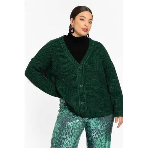 YOEK gebreid vest donkergroen met lurex Prijzen