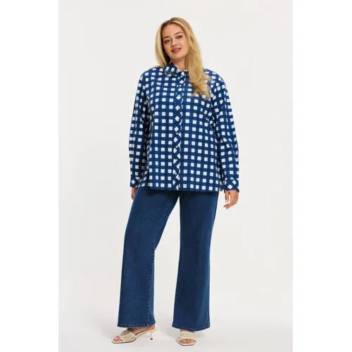 Opt for a trendy look with this blouse featuring a modern check print. Made from airy, comfortable cotton and designed in a straight yet relaxed fit. The blouse has a classic collar embellished with sparkling stones for a playful, chic detail and closes with buttons. Perfect to wear with jeans for a casual outfit.