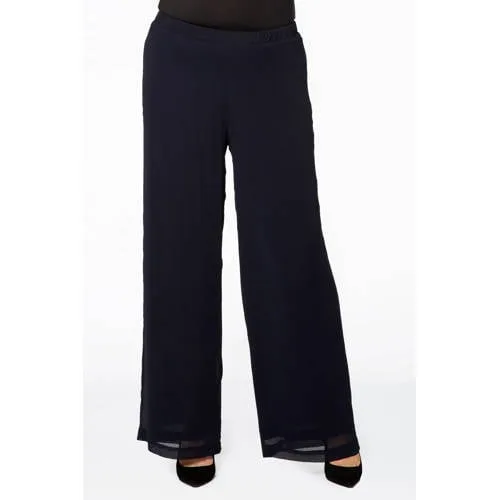 Sophisticated voile trousers with a ribbed elasticized waistband and long length legs. It has a thin second layer and is therefore non-see-through, but still light. Good to combine with voile tunics or blouses in a print.