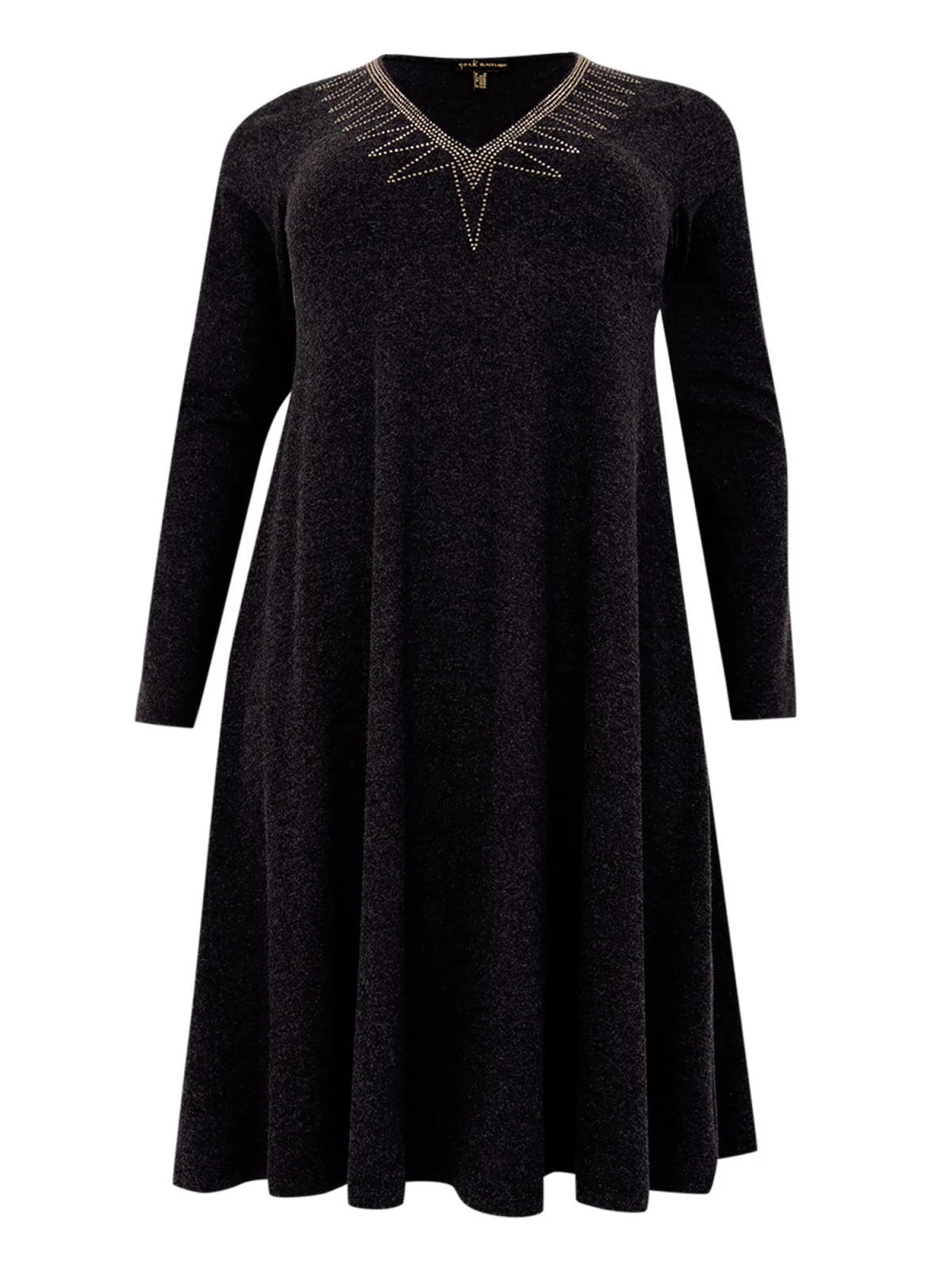 Materiaal: Viscose; Halstype: V-hals; Motief: Effen; Details: Sierstenen; Lengte: Knielengte; Pasvorm: Losse pasvorm; Armlengte: Lange mouw