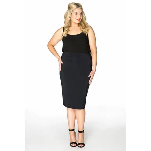 A basic tight skirt, easy to combine with uni and printed tops. Beautifully cut to below the knee, it will instantly shape an elegant silhouette.