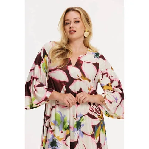 Make a striking entrance with this flowing maxi dress, crafted from our popular dolce fabric. The relaxed A-line silhouette and wide sleeves create an elegant, feminine look, while the bold painterly print adds an artistic touch. A true favourite in the collection for its elegance and standout design.