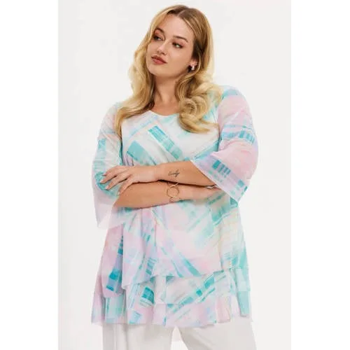 Design: Materiaal mix; Materiaal: Gerecycled materiaal; Kraag: Zonder kraag; Extra's: All-over patroon; Pasvorm: Losse pasvorm; Armlengte: Halve mouw; Lengte: Lange pasvorm