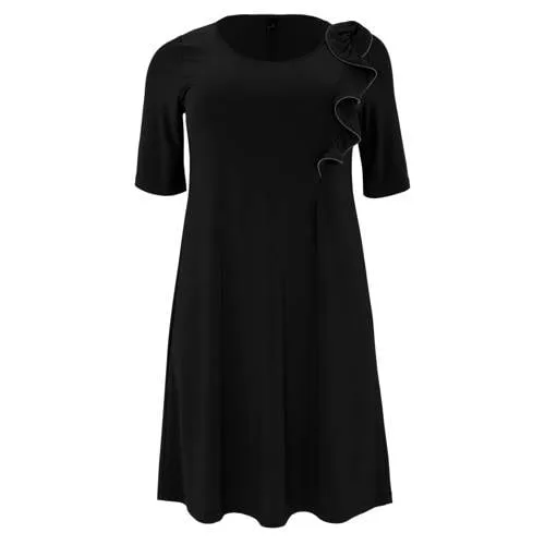 Deze jurk van YOEK heeft korte mouwen en een ronde hals met ruches aan de onderzijde voor een speelse look. De midi-lengte zorgt voor een moderne uitstraling. Je draagt dit item bij veel gelegenheden.