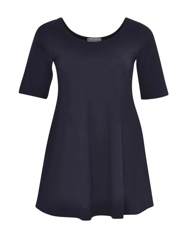 Materiaal: Jersey; Halstype: Ronde hals; Motief: Effen; Pasvorm: Losse pasvorm; Armlengte: Halve mouw; Lengte: Lange pasvorm