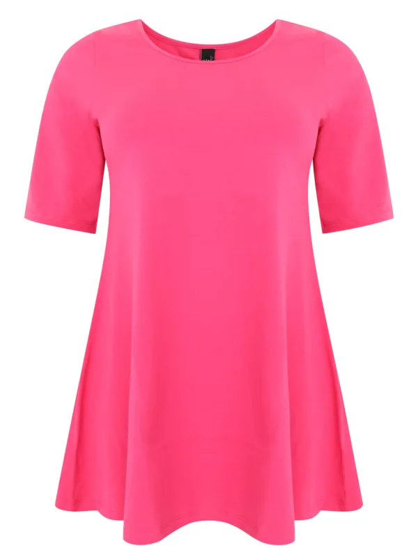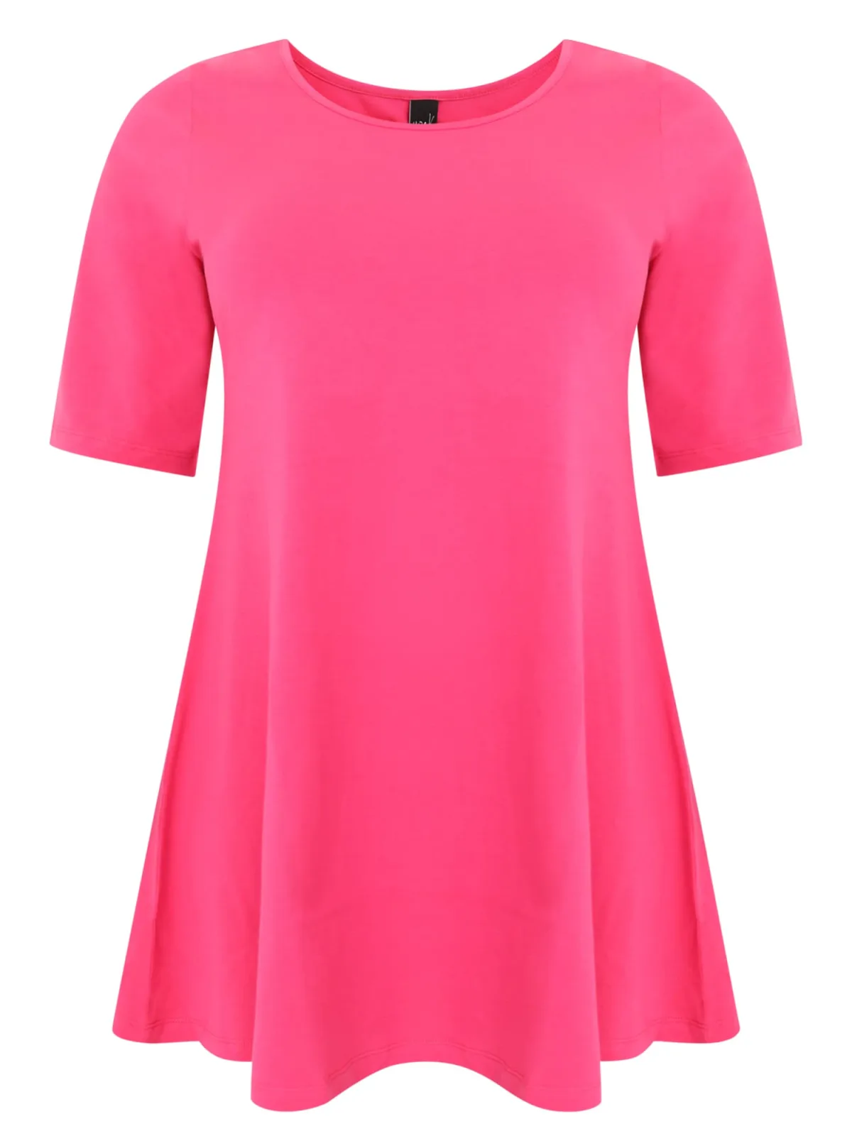 Materiaal: Jersey; Halstype: Ronde hals; Motief: Effen; Pasvorm: Losse pasvorm; Armlengte: Halve mouw; Lengte: Lange pasvorm