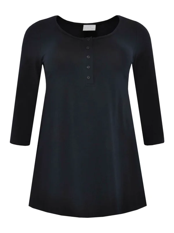 Design: Gevoerde zoom/rand, Knop placket; Type sluiting: Knoopsluiting; Materiaal: Jersey; Halstype: Henley hals; Motief: Effen; Kraag: Zonder kraag; Extra’s: Op staal naden, Buigzame grip; Pasvorm: Losse pasvorm; Armlengte: Driekwart mouw; Lengte: Lange pasvorm