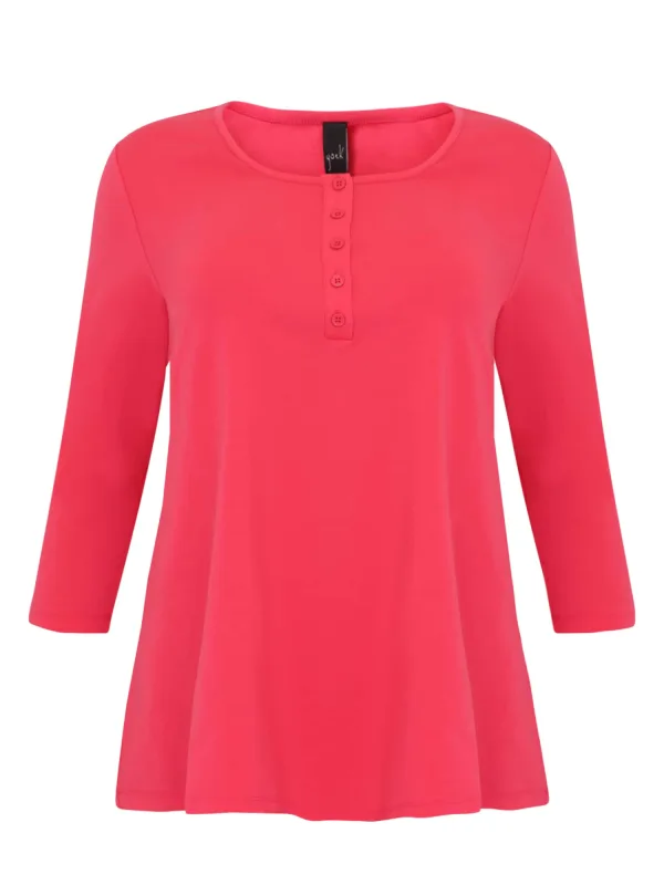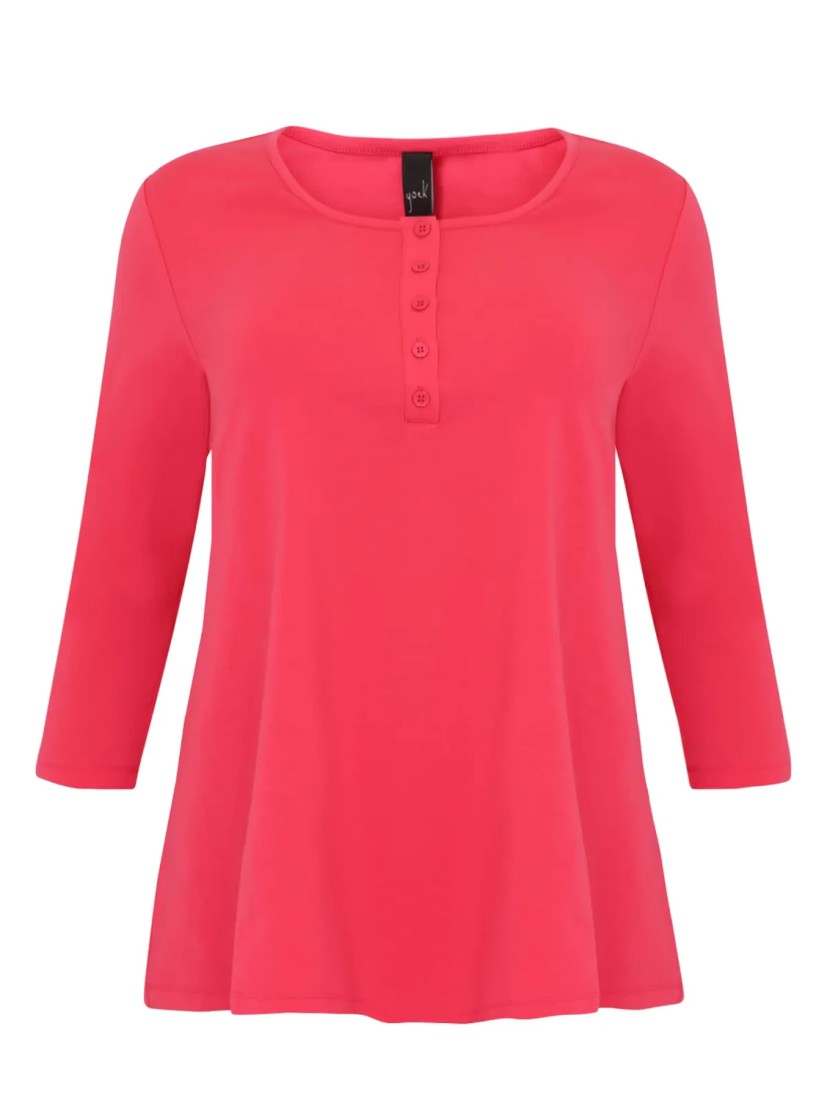 Design: Gevoerde zoom/rand, A-lijn, Flare, Knop placket; Type sluiting: Knoopsluiting; Materiaal: Jersey; Halstype: Henley hals; Motief: Effen; Kraag: Zonder kraag; Extra's: Op staal naden, Voelt zacht aan; Pasvorm: Losse pasvorm; Armlengte: Driekwart mouw; Lengte: Lange pasvorm