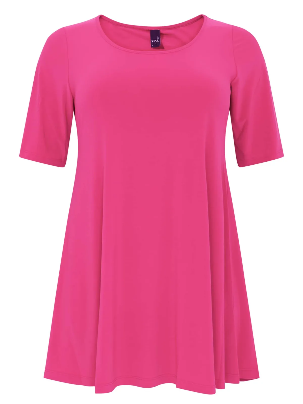 Materiaal: Jersey; Halstype: Ronde hals; Motief: Effen; Details: Plooien; Pasvorm: Losse pasvorm; Armlengte: Kwartmouw; Lengte: Lange pasvorm