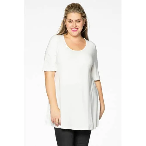 Halstype: Ronde hals; Motief: Effen; Kraag: Tuniek kraag; Pasvorm: Wijde pasvorm; Armlengte: Kwartmouw; Lengte: Normale lengte