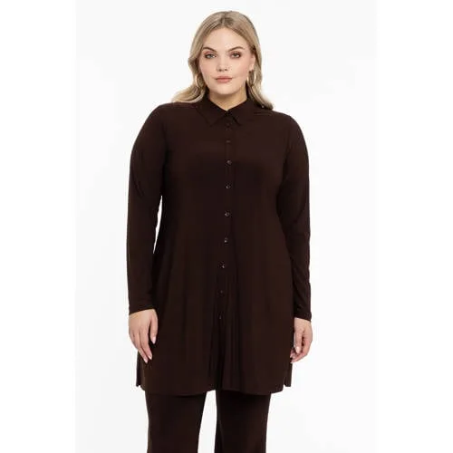 YOEK top DOLCE van travelstof bruin