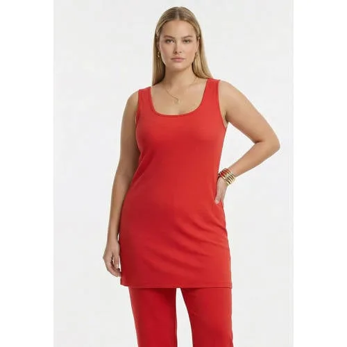 A reliable essential for everyday wear, this singlet is made from the smooth and stretchy dolce fabric. The clean design features a rounded square neckline and broad shoulder straps. Easy to style on its own or layered under a cardigan or blazer, making it a versatile base for any outfit.
