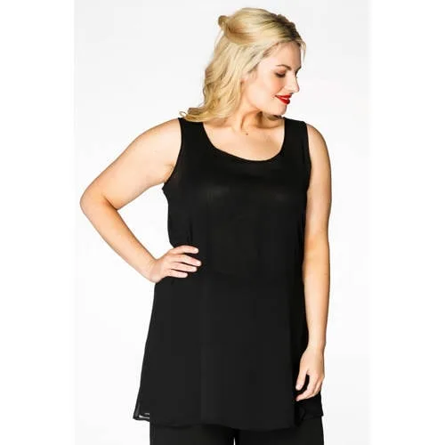 A basic voile singlet, available in black, navy and white. This essential piece is sleeveless, has a scoop neck and is fully lined. It is nice piece to wear with our voile pointy jacket. This item has a wide fit.