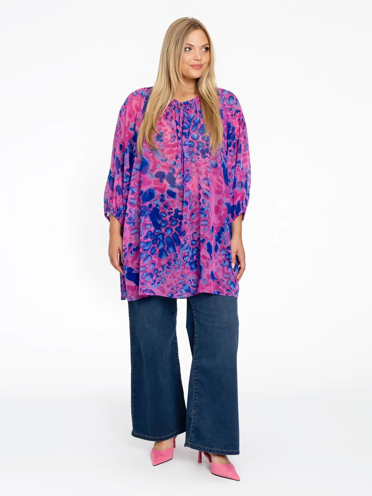 Design: Pofmouwen, Rugplooi; Type sluiting: Slip; Motief: Kleurverloop; Kraag: Zonder kraag; Details: Gedrapeerd; Extra's: All-over patroon; Pasvorm: Wijde pasvorm; Armlengte: Kwartmouw; Lengte: Lange pasvorm