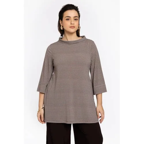 Blouse type: Wijde blouse; Design: A-lijn, Zijdelingse inkepingen; Motief: Geruit; Pasvorm: Losse pasvorm; Armlengte: Driekwart mouw; Lengte: Normale lengte