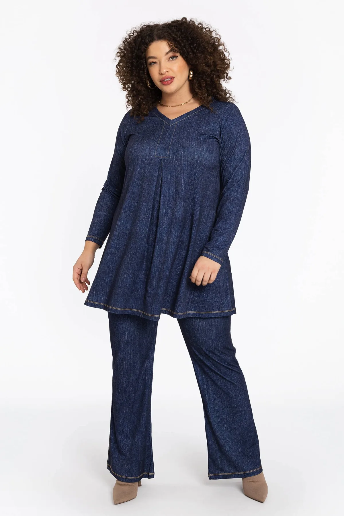 Deze tuniek van YOEK heeft rechte mouwen en een V-hals. De tuniek is gemaakt van polyester en heeft een denim look. Je draagt dit model met een loose fit.