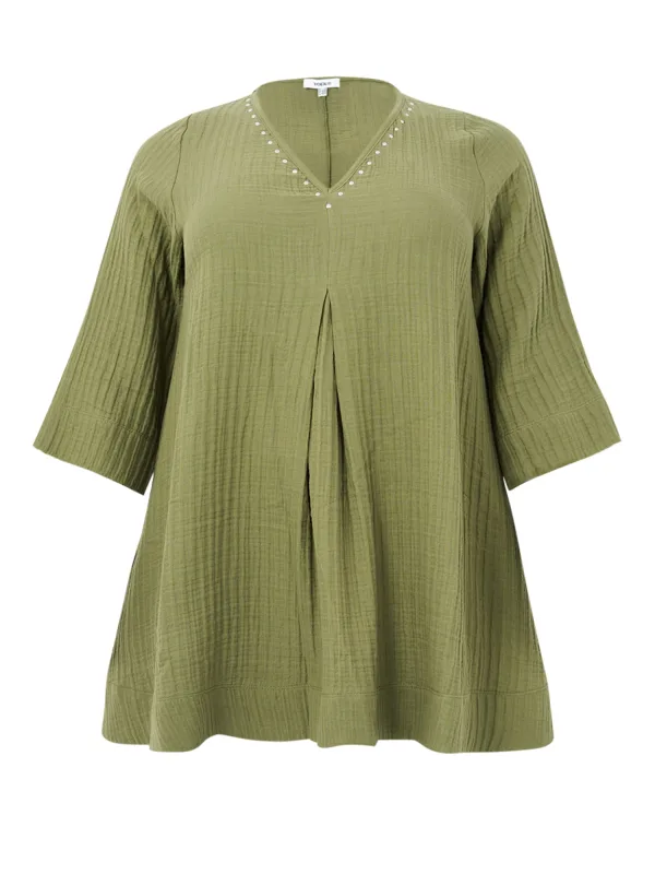 Design: Gevoerde zoom/rand; Materiaal: Katoen; Motief: Effen; Kraag: Tuniek kraag; Extra's: Studs, Met textuur; Pasvorm: Losse pasvorm; Armlengte: Halve mouw; Lengte: Lange pasvorm