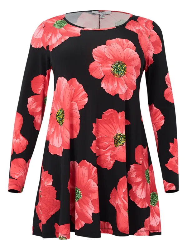 Design: Flare, Rechte zoom; Motief: Bloemenprint; Kraag: Tuniek kraag; Extra's: Gladde stof; Pasvorm: Losse pasvorm; Armlengte: Lange mouw; Lengte: Normale lengte