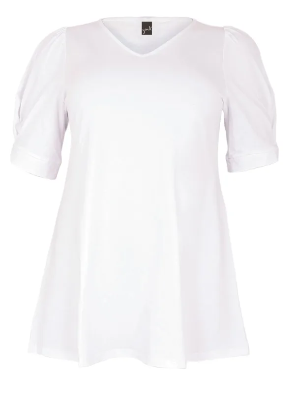 Design: Pofmouwen; Materiaal: Katoen; Motief: Effen; Kraag: Zonder kraag; Pasvorm: Losse pasvorm; Armlengte: Halve mouw; Lengte: Normale lengte